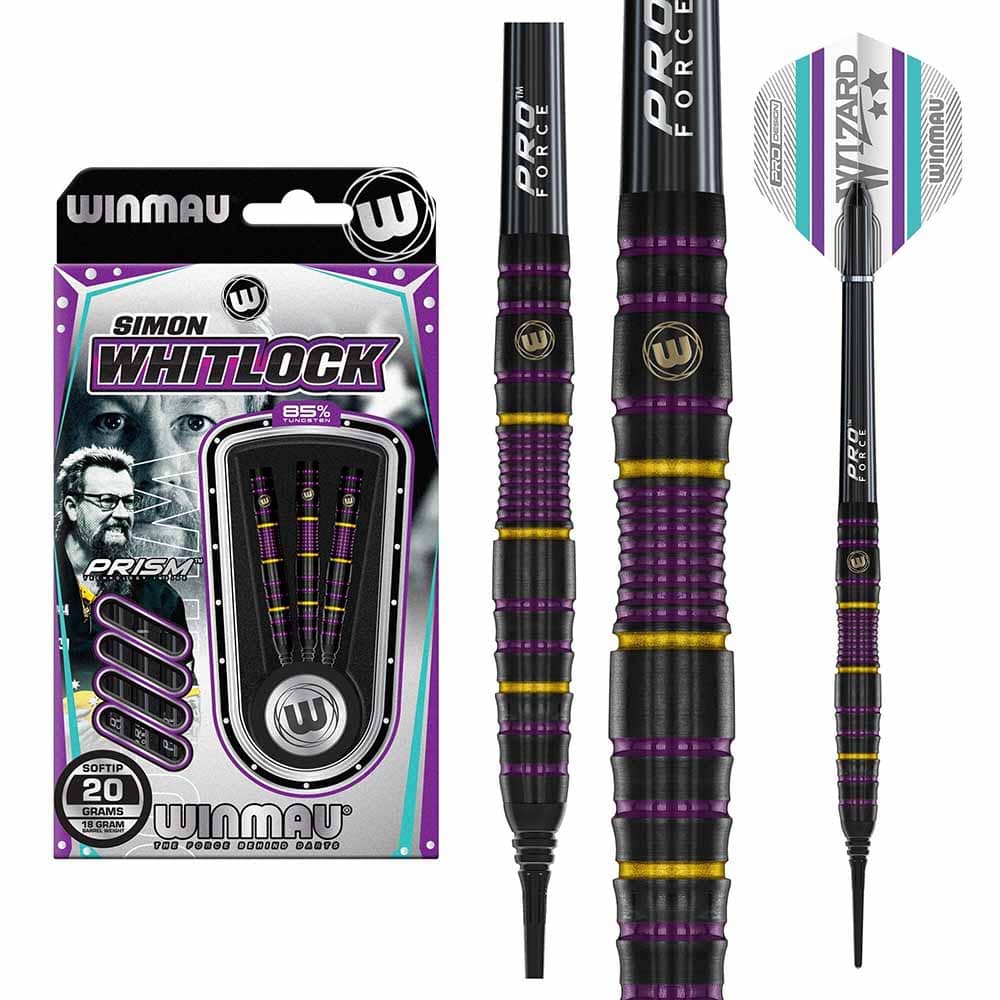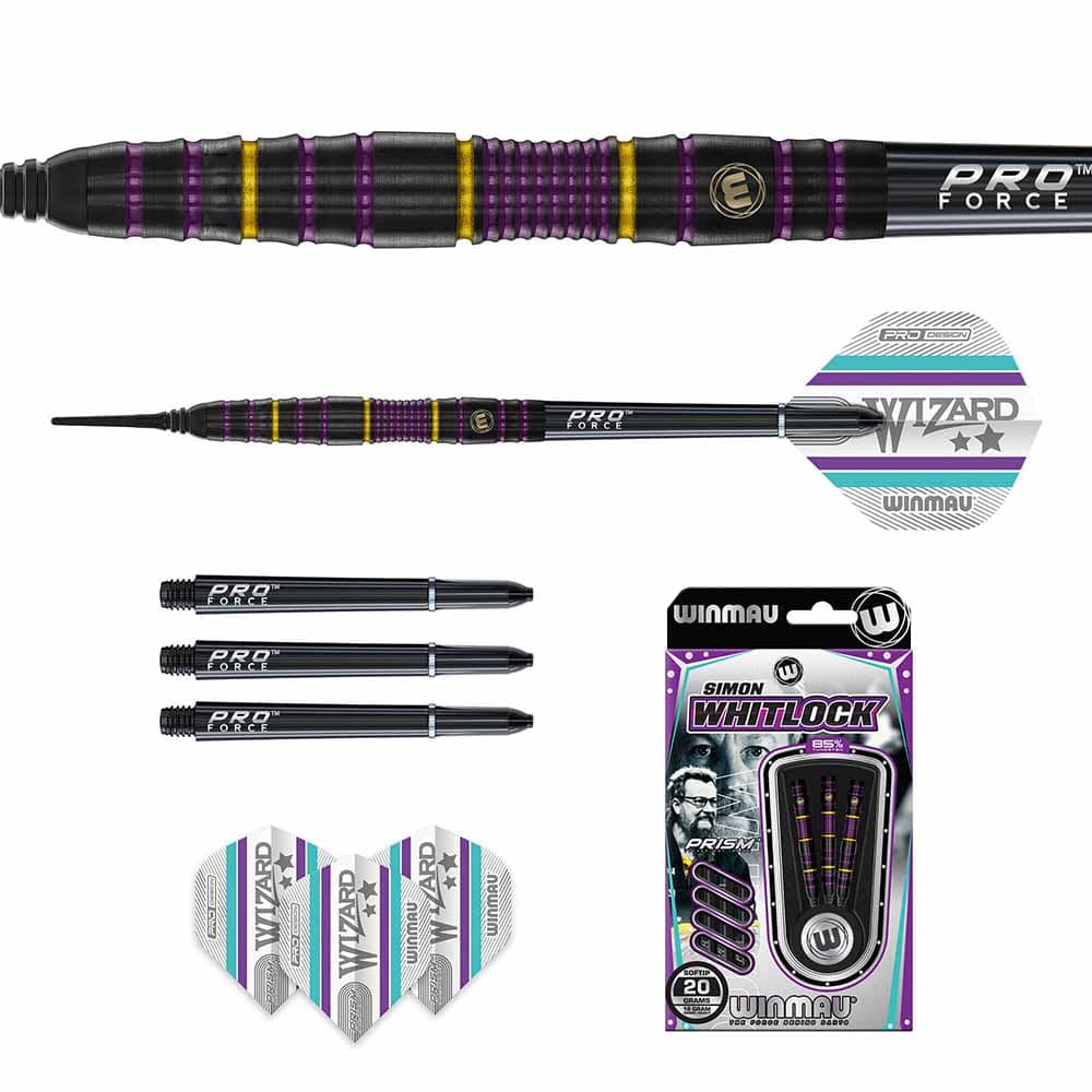 El Pack se compone por 3 cuerpo Simon Whitlock 85% Winmau, 1 juegos de 3 cañas, 3 plumas Winmau y 1 set de 3 puntas 2ba 4mm Winmau.