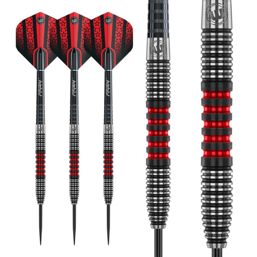 El juego de dardos Winmau Joe Cullen 25gr se compone por 1 set de 3 cuerpos con punta de metal, 1 set de 3 cañas Prism Force Medium Black y 1 set de 3 plumas Prism Alpha.