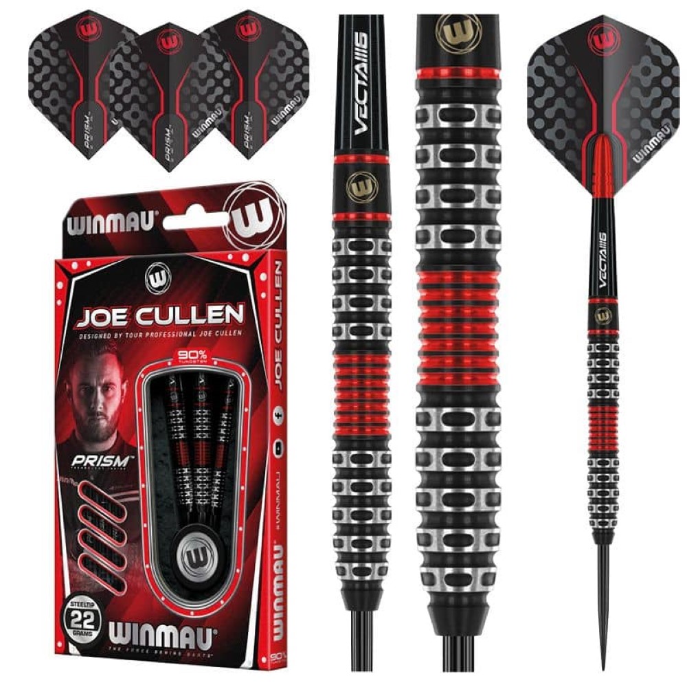 El juego de dardos Winmau Joe Cullen S.E. 22gr se compone por 1 set de 3 cuerpos con punta de metal, 1 set de 3 cañas Vecta Blade 6 Short y 1 set de 3 plumas Prism Zeta.