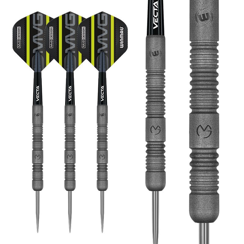 El juego de dardos Winmau MVG Exact 24gr se compone por 1 set de 3 cuerpos con punta de metal, 1 set de 3 cañas Vecta Short, 1 set de 3 plumas Prism Alpha y 1 protector de puntas de metal MVG.