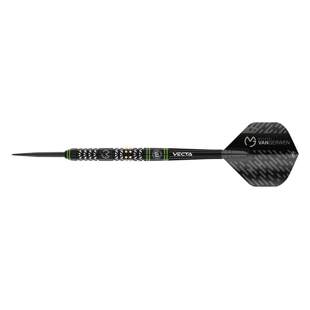 El juego de dardos Winmau MVG Vantage 21gr se compone por 1 set de 3 cuerpos con punta de metal, 1 set de 3 cañas Vecta Short, 1 set de 3 plumas Prism Delta y 1 protector de puntas de metal MVG.