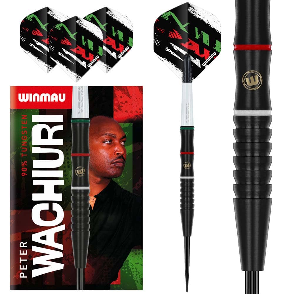 El pack se compone por 1 set de 3 cuerpos de dardos Winmau Peter Wachiuri, 1 set de 3 cañas Winmau Vecta y 1 set de 3 plumas Winmau.