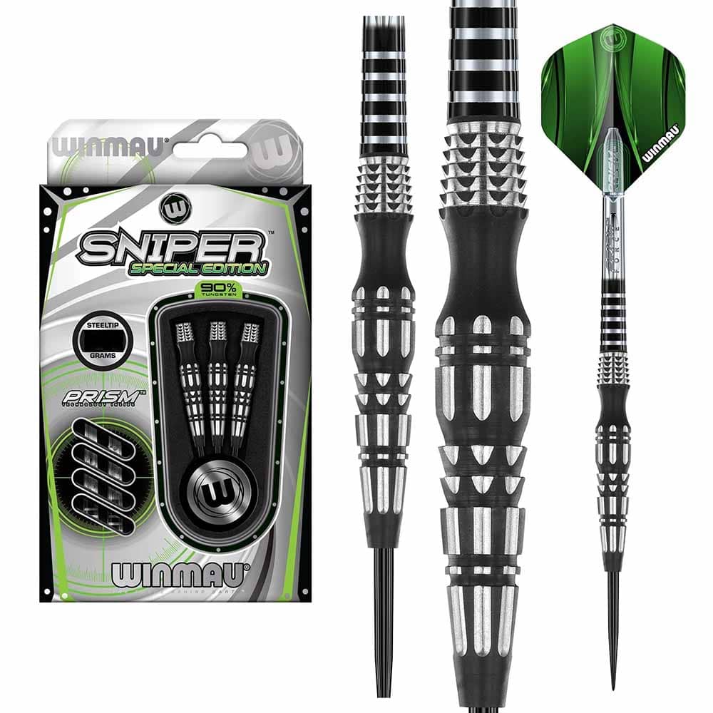 El juego de dardos Winmau Sniper S.E 23g, se compone por 1 set de 3 cuerpos 1 set de 3 cañas y set de puntas de metal