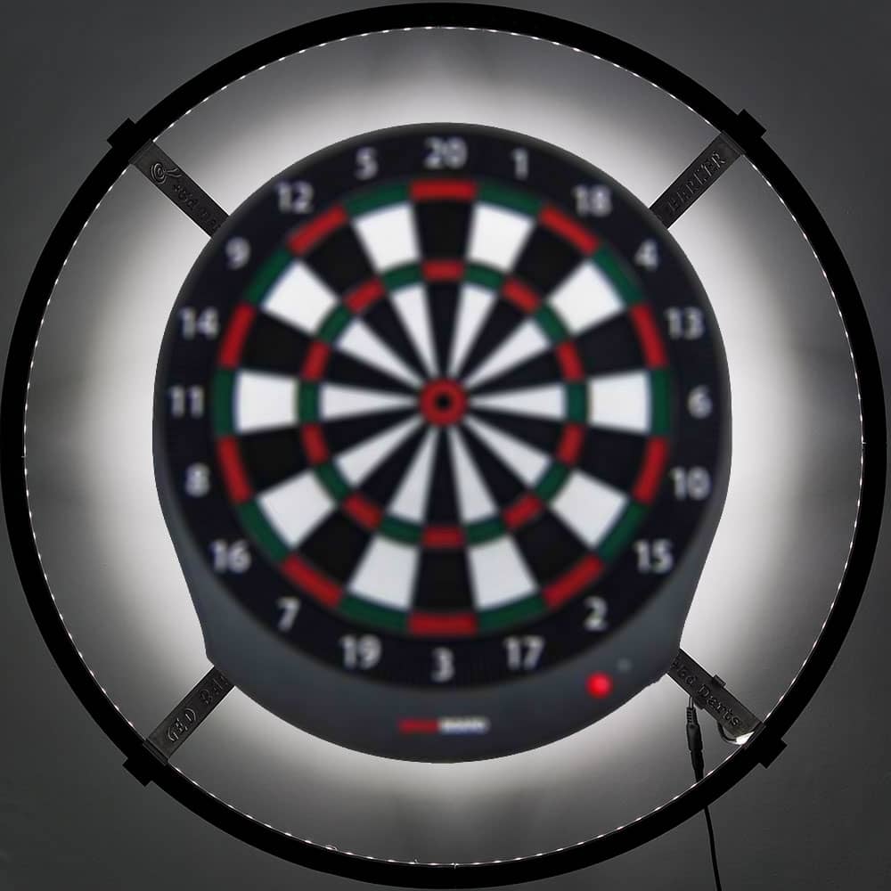 Sistema de iluminación muy resistente y robusto fabricado con en plástico de gran calidad y con leds de alta luminosidad, dartboard Light para la diana Gran Board Dash.
