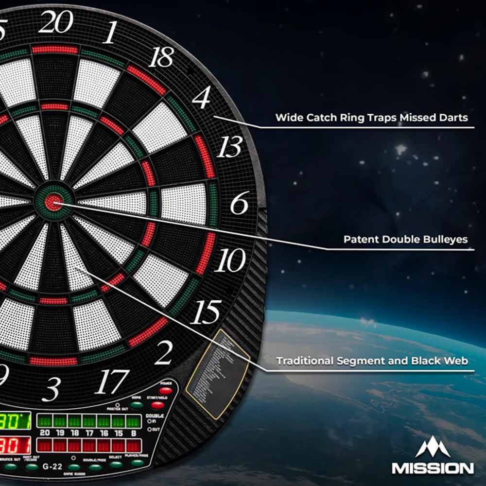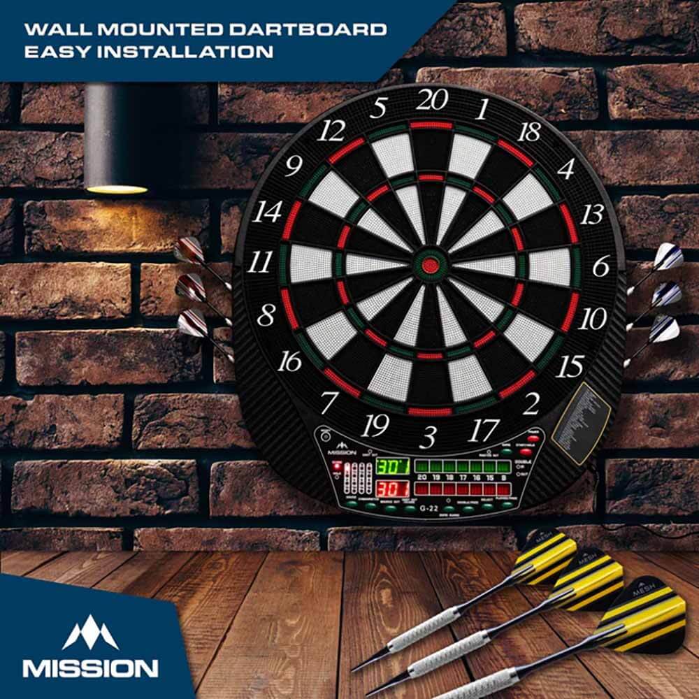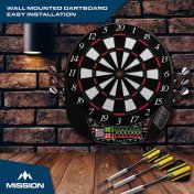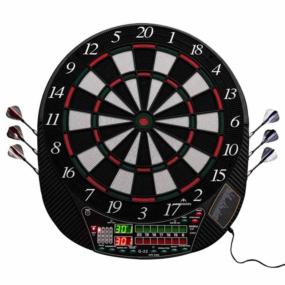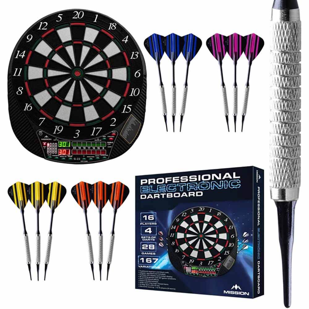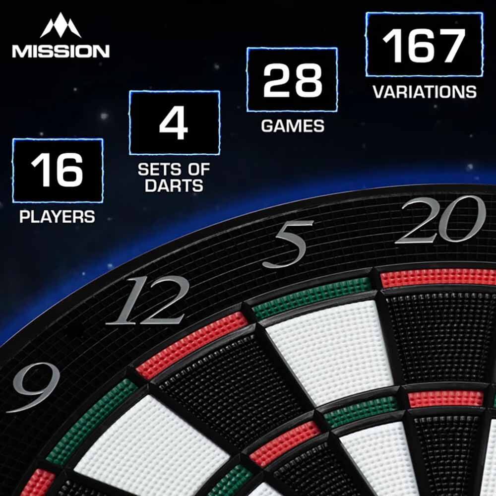 El producto se compone por 1 diana Electronica Mission y 4 juegos de dardos.