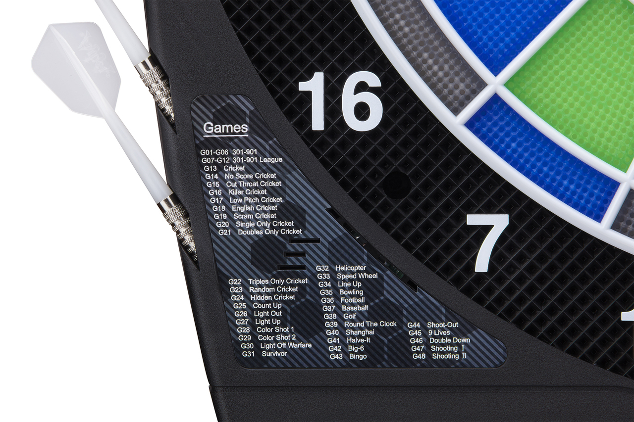 Los segmento incluye el sistema Target Tested Tough que evita que los segmentos de puntuación con el uso puedan agrietarse, aparte sus agujeros se han termina cóncavos para ser compatible con casi todos los tipos de puntas y evitar molestos revotes.Incluye marcador ampliado completo de cricket con opciones para el cricket Minesota y Español.