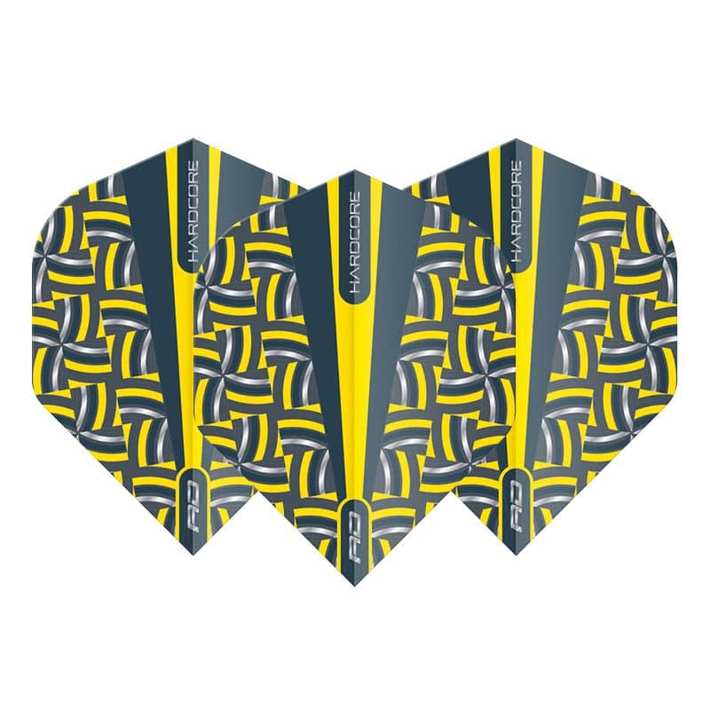 Cada unidad añadida al carrito se compone por 1 set, 3 plumas Hardcore Radikal Yellow Rope Standard de la marca de dardos Reddragon