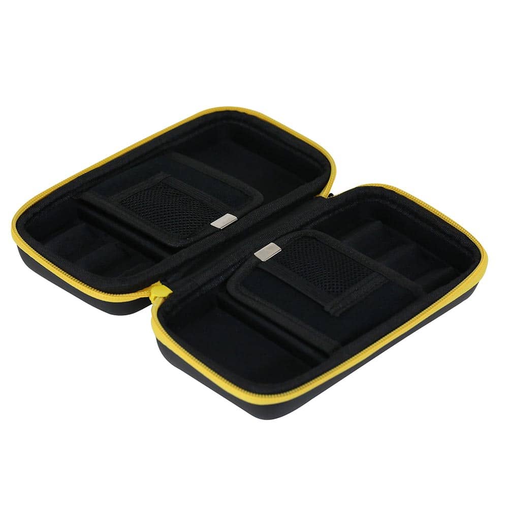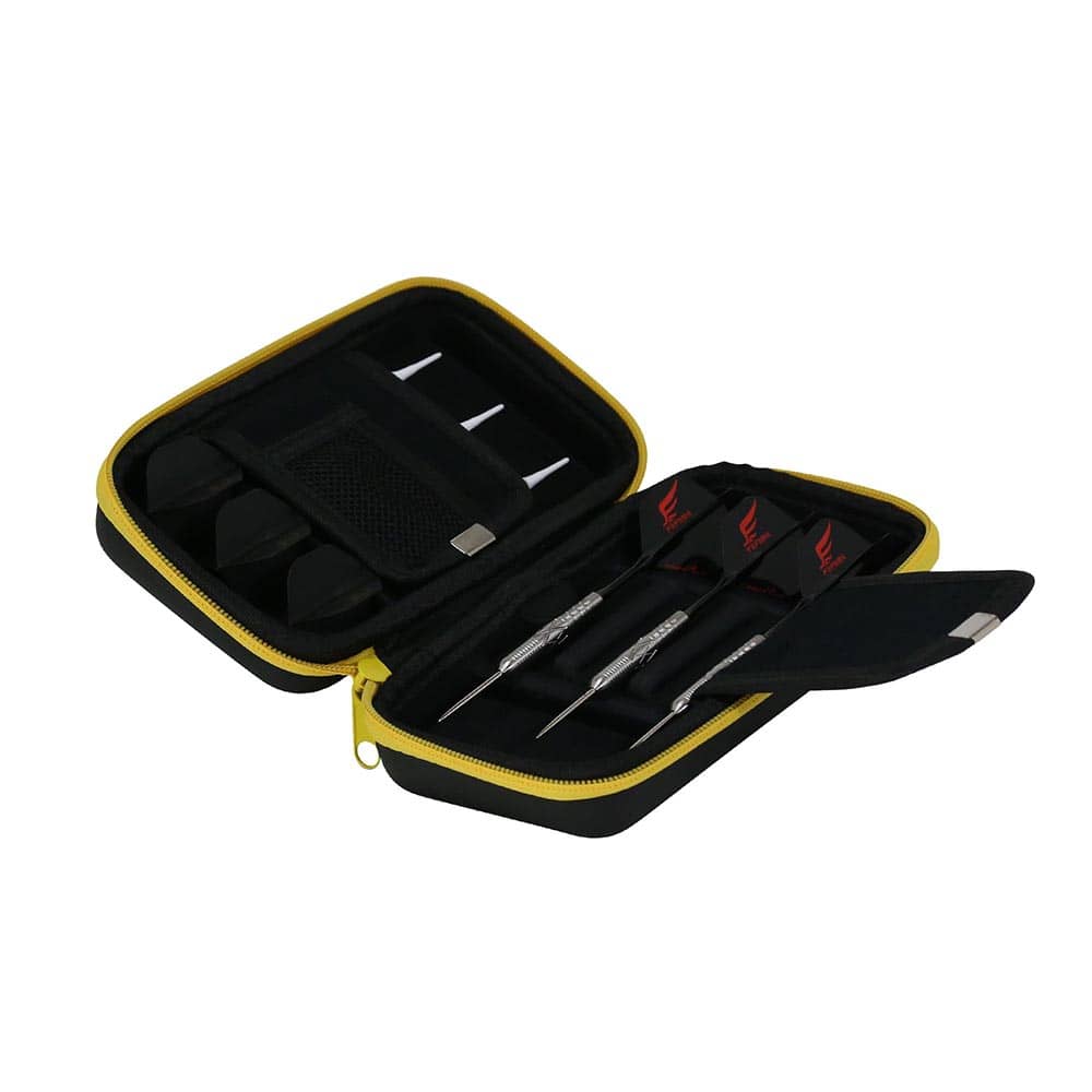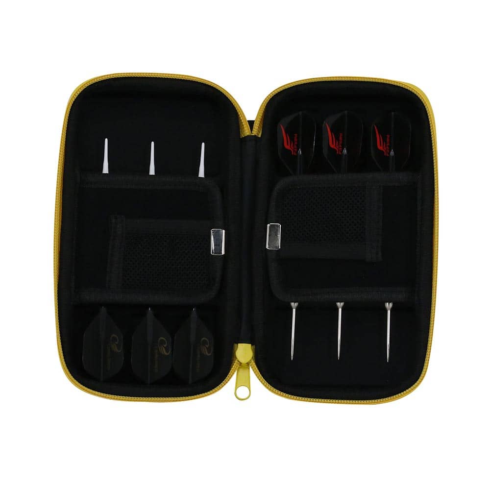 Capacidad de almacenamiento: 2 juegos de dardos completos, 2 tarjetas, plumas, cañas y puntas