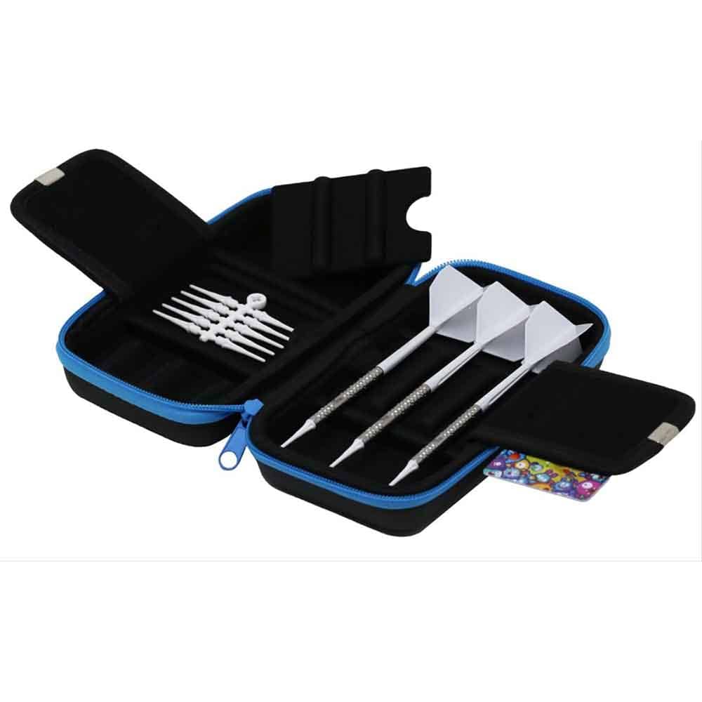 Capacidad de almacenamiento: 2 juegos de dardos completos, 2 tarjetas, plumas, cañas y puntas