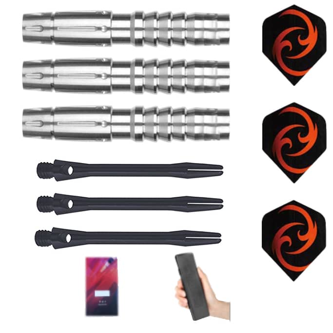 El juego se compone de 3 dardos completos, 1 set de 3 cuerpos, 1 set de 3 cañas ,1 set de 3 plumas y 1 set de 3 puntas 2ba