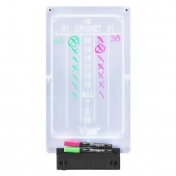 El productos se compone por 1 pizarra para jugar a dardos retroiluminada, 2 rotuladores, paño y kit de montaje.