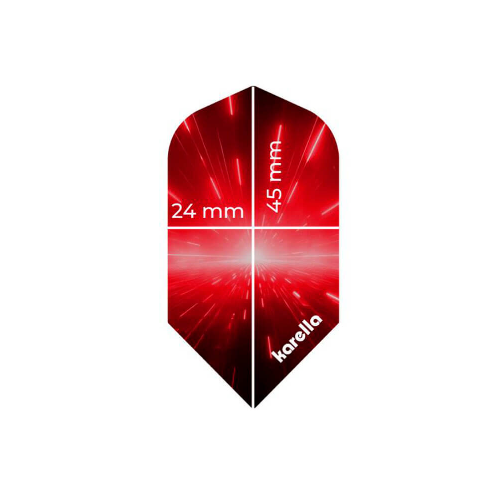 Atractivas plumas Karella de diseño estilizado. En comparación con el diseño estándar, las aletas slim son significativamente más estrechas. Esto se traduce en una trayectoria más rápida y directa para los dardos. Además, su diseño estrecho permite colocar los dardos muy juntos en la diana.