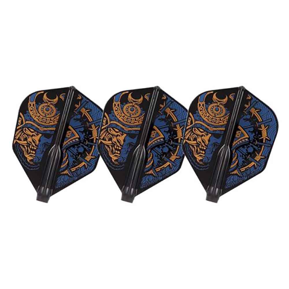 El producto se compone por 1 set de 3 plumas de la marca de dardos Cosmo Dartos modelo Fit Flights Clasico Samurai Skull B Negro Shape