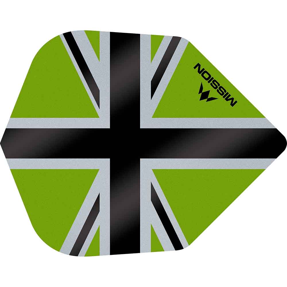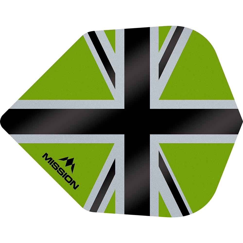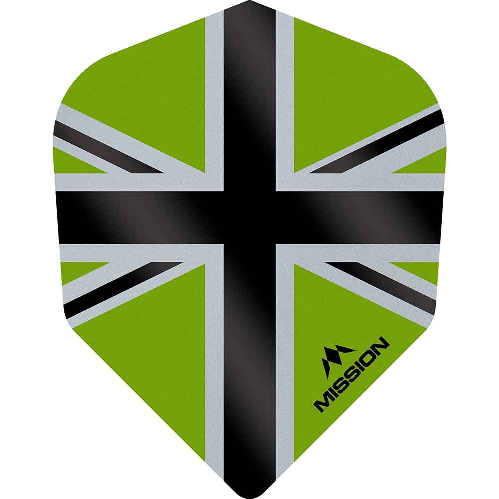 Dardosmania Plumas Mission Darts No6 Std Alliance-X Union Jack Negro Verde F3121
