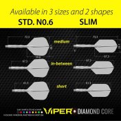 El producto se compone por 1 set de 3 plumas para dardos Viper Diamond Core.