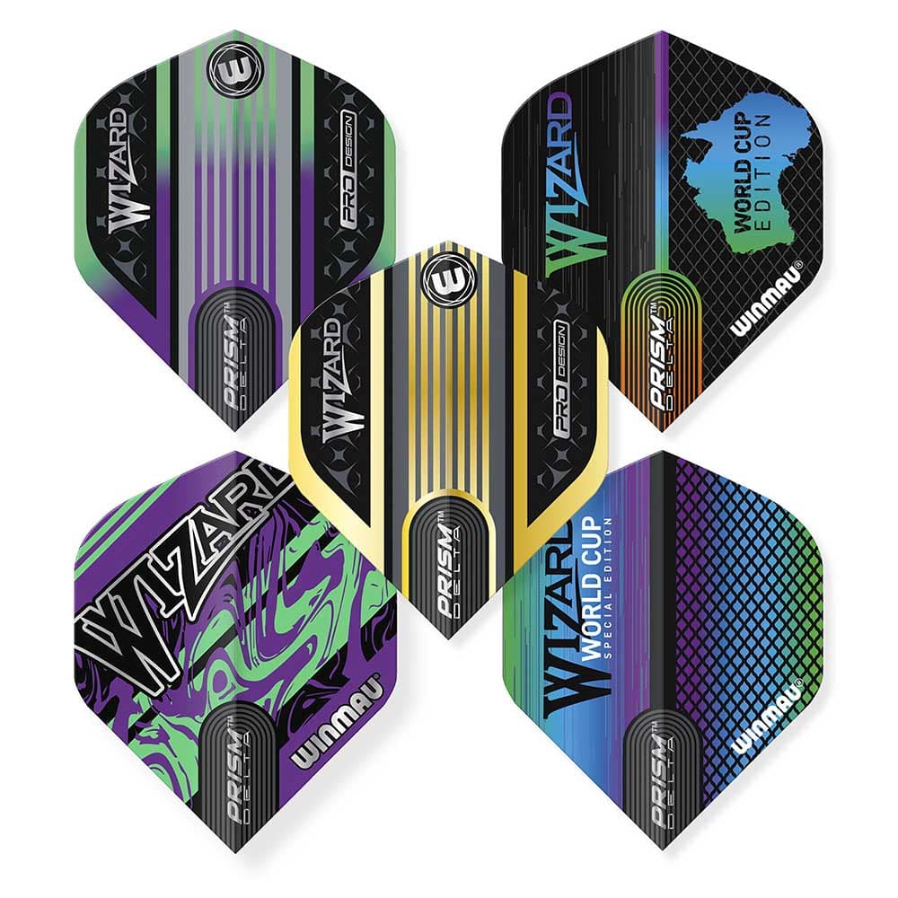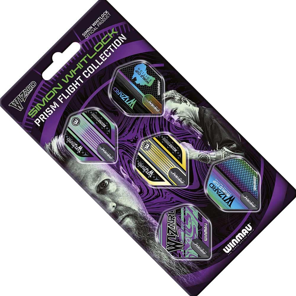 El producto se compone por 1 pack de plumas con 5 sets de 3 plumas de Simon Whitlock Collection de la marca de dardos Winmau Darts.