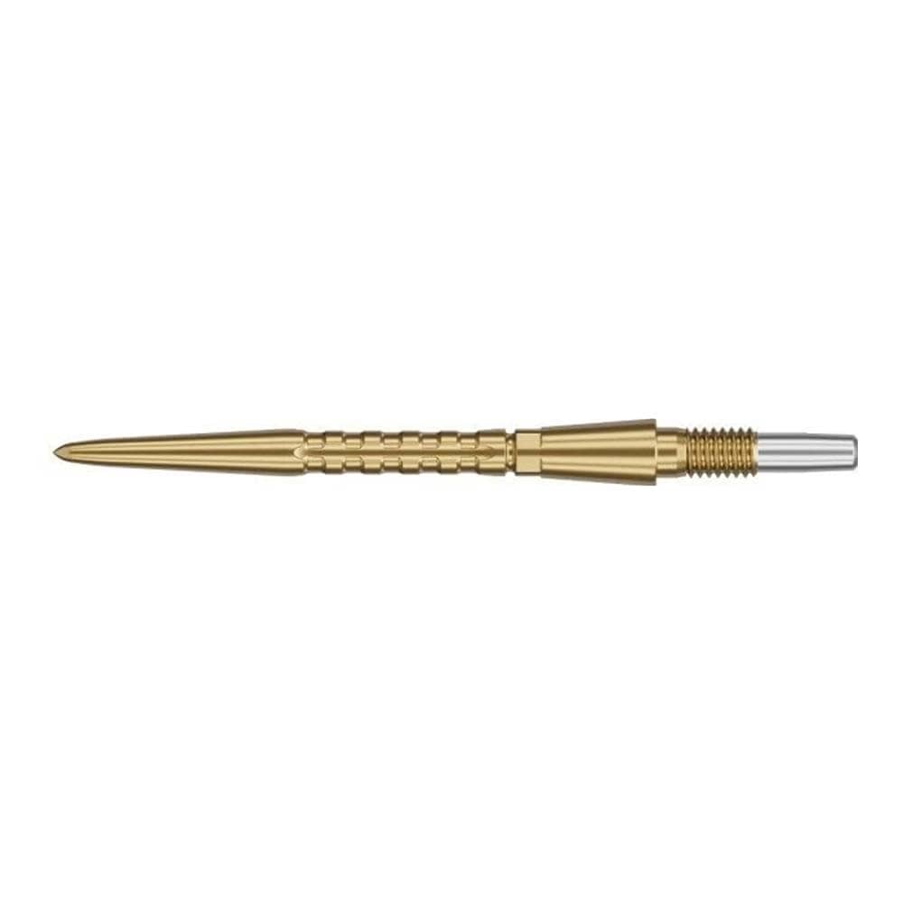 El producto se compone de 1 juegos de 3 puntas de la marca Target Darts Storm Surge Dorado 35mm