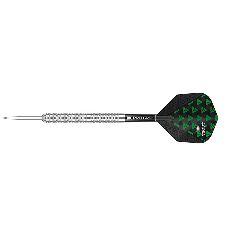 Juego de dardos de la marca Target Darts Agora A05 con peso de 22 gramos, dardos con una característica de gran valor ya que su barril tiene dos tipos de agarre que aporta una increíble precisión gracias a su excelente agarre.