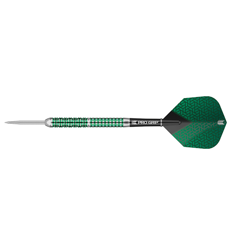 Juego de dardos fabricado por Target Darts, modelo Agora Verde AV02 23gr, dardos con un 90% de tungsteno, agarre con sistema pro grip pro ultra que aporta a este modelo de dardos un agran agarre.
