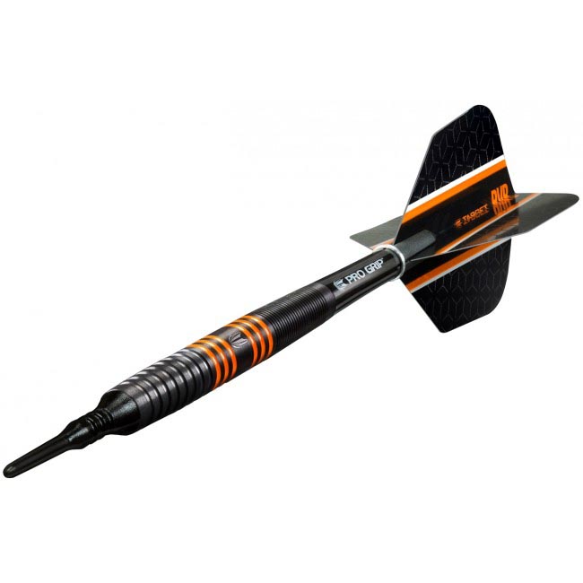 El pack se compone por 3 cuerpos dardos Raymond Van Barneveld Black, set de 3 plumas Target, set de 3 cañas Pro Grip y punta 2ba pixel
