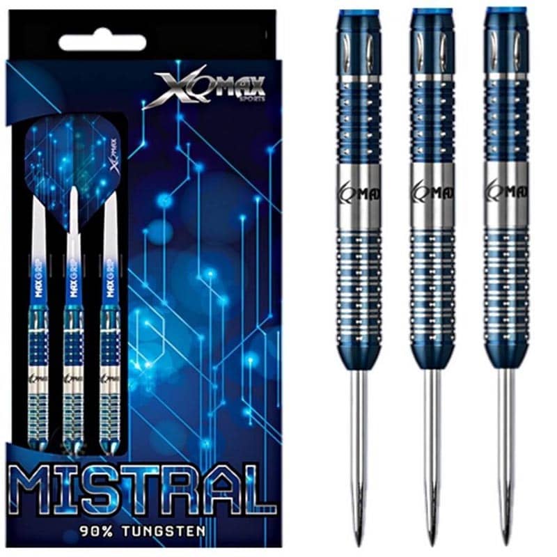 Incluye 3 dardos Mistral 90% 21gr, 1 set de 3 plumas para dardos Xqmax, 1 set de cañas, 1 protector de puntas de metal y 1 caja para llevar los dardos.
