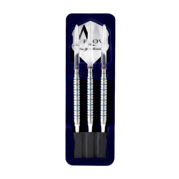 Dardos con un diseño en forma de torpedo, a diferencia de su otro modelo Fallon 80 Blue Label, este dardo tiene el cuerpo recto y paralelo.