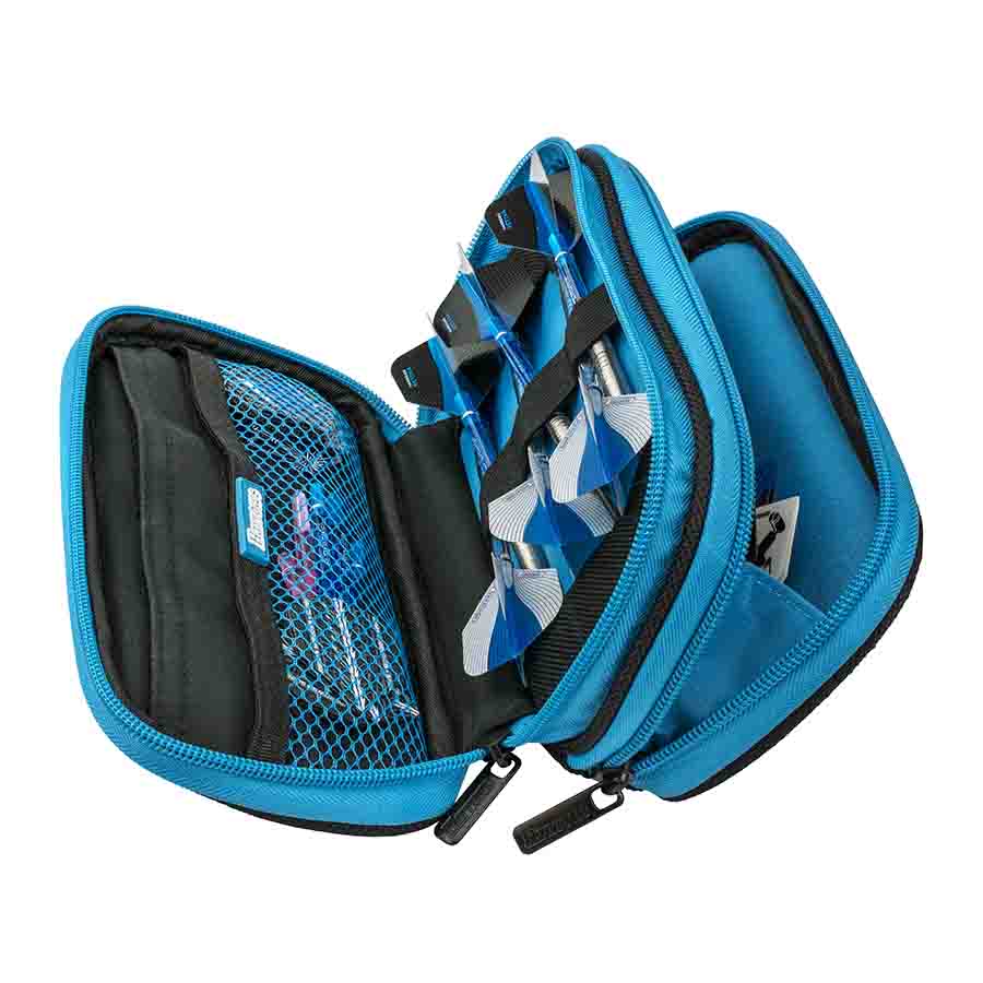 Funda de gran capacidad para transportar tus dardos de la marca Harrows Darts, valida según muestra la imagen para transportar asta dos juegos de dardos montados, dispone de bolsillo de rejilla para llevas repuestos de cañas, plumas o puntas y otro compartimenta de gran capacidad para llevar repuestos.