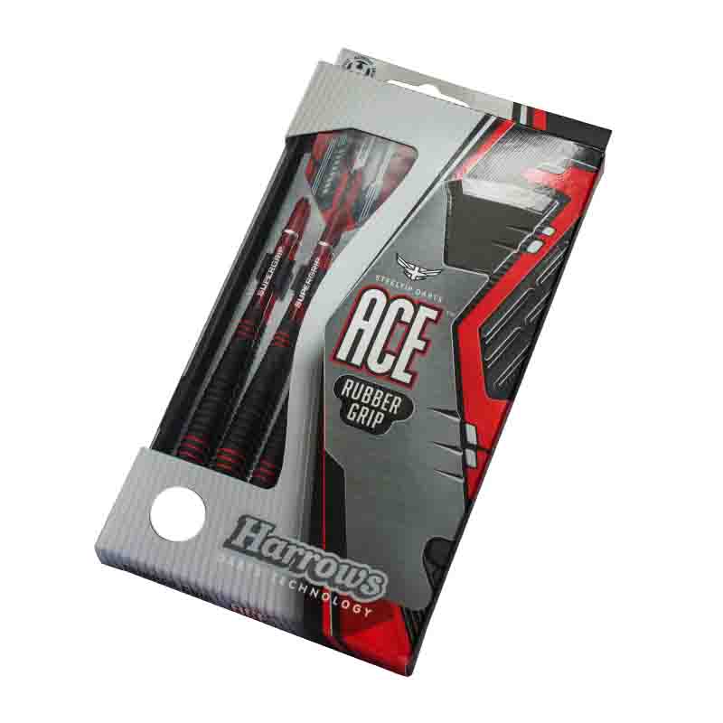 Dardos fabricados en latón lacados en color negro, los dardos Ace de Harrows disponen del nuevo sistema Rubber Grip que aporta mas precisión y mejor agarre gracias a sus dos tipos de grip.