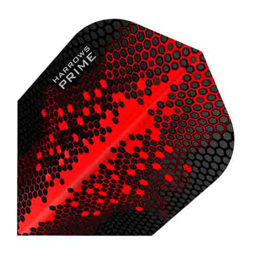 Plumas para dardos de la gama Prime, plumas con sistema Uv print technology, plumas de formato estandar con grosor de 100 micrones, color rojo negro
