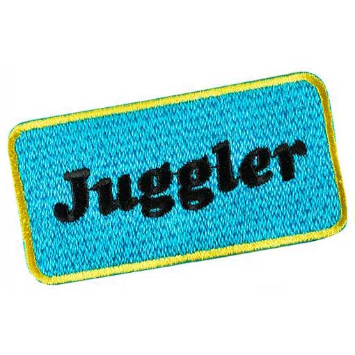 Parche de la firma de dardos Cosmo Darts, motivos de parche gama de productos Juggler.