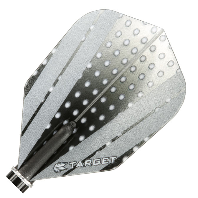 Pluma para dardos Target Darts, fabricada con plástico de 100 micrones para hacer de esta pluma un sistema mas duradero