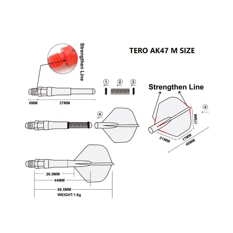 Shaft Cuesoul Tero Flights White 37mm CSDF-AK7+2