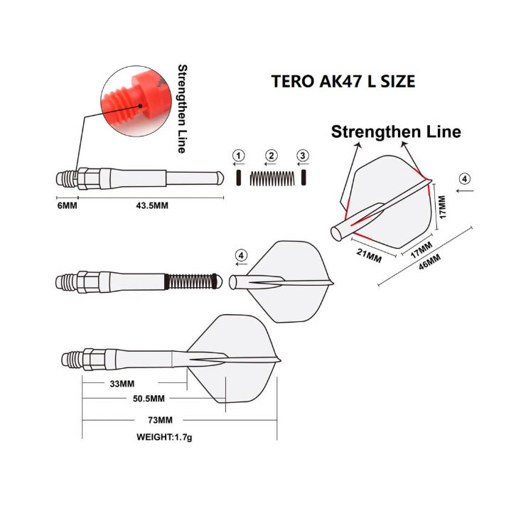 Shaft Cuesoul Tero Flights White 43.5mm CSDF-AK7-L2